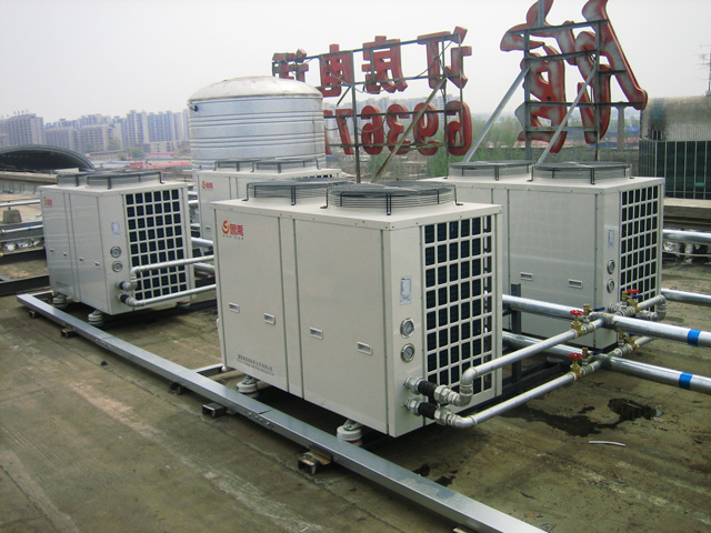 (1)熱泵機(jī)組通過空氣中的熱交換提取熱能,達(dá)到制熱的目的。