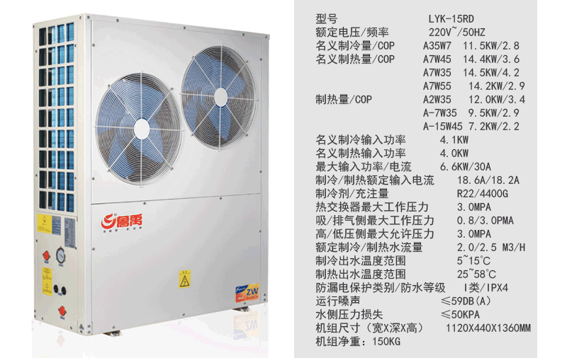 五、LYK-15RD低溫空氣源熱泵機組參數: