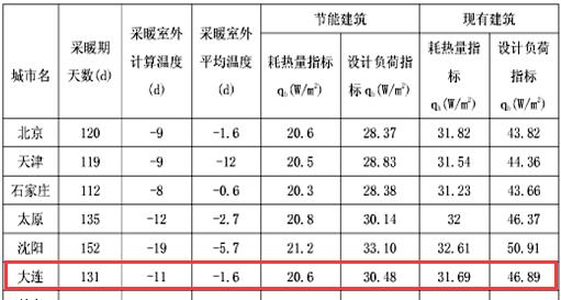 根據(jù)《全國主要城市采暖期耗熱量指標(biāo)和采暖設(shè)計熱負荷指標(biāo)》,大連市中山區(qū)節(jié)能建筑每平方米采暖季供暖所需熱能為20.6w/㎡*24h*131d/1000=64.77kwh/㎡