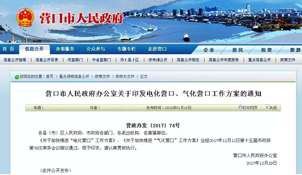 2018年1月10日,遼寧省營口市人民政府辦公室發布《關于加快推進“電化營口”工作方案》,指出到2020年,營口市累計新增電能替代電量14億千瓦時。在居民采暖領域,電能替代主要包括電供暖、超低溫空氣源熱泵、蓄熱電鍋爐、電蓄冷空調等分散電采暖技術。