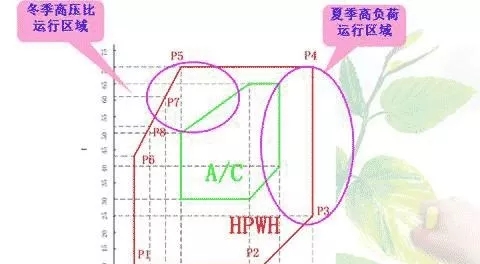 圖1 空調(diào)壓縮機(jī)(A/C)和熱泵壓縮機(jī)(HPWH)運(yùn)行范圍對(duì)比圖