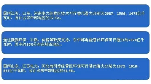 若只考慮技術(shù)可行,不考慮經(jīng)濟(jì)性,東中部電能替代技術(shù)可行潛力約1.37萬億千瓦時,其中約70%分布在城市地區(qū)。