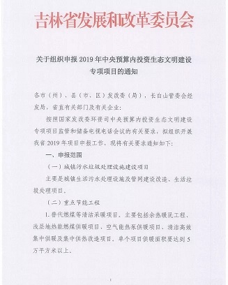 根據《中央預算內投資生態文明建設專項管理暫行辦法》(發改環資規〔2017〕2135號)和7月27日國家發展改革委中央預算內投資項目申報及監管電視電話會議精神,近期山東、河北、河南、吉林等地陸續發布關于組織申報相關項目的通知。