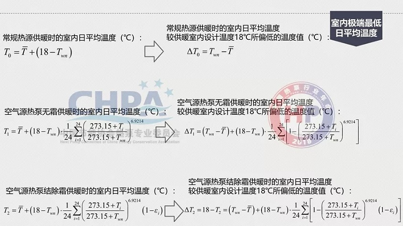 那么,怎么由18℃降到13℃?原因是在統計規定室外計算溫度的時候,已經有了不保證5天的室內空氣質量。在這樣的情況下,它的偏差就比較大了。其中,室內日平均溫度不保證18℃的條件是熱泵無霜制熱量在經過結除霜修正后的實際制熱量衰減至低于維持室內溫度18℃的建筑需熱量。